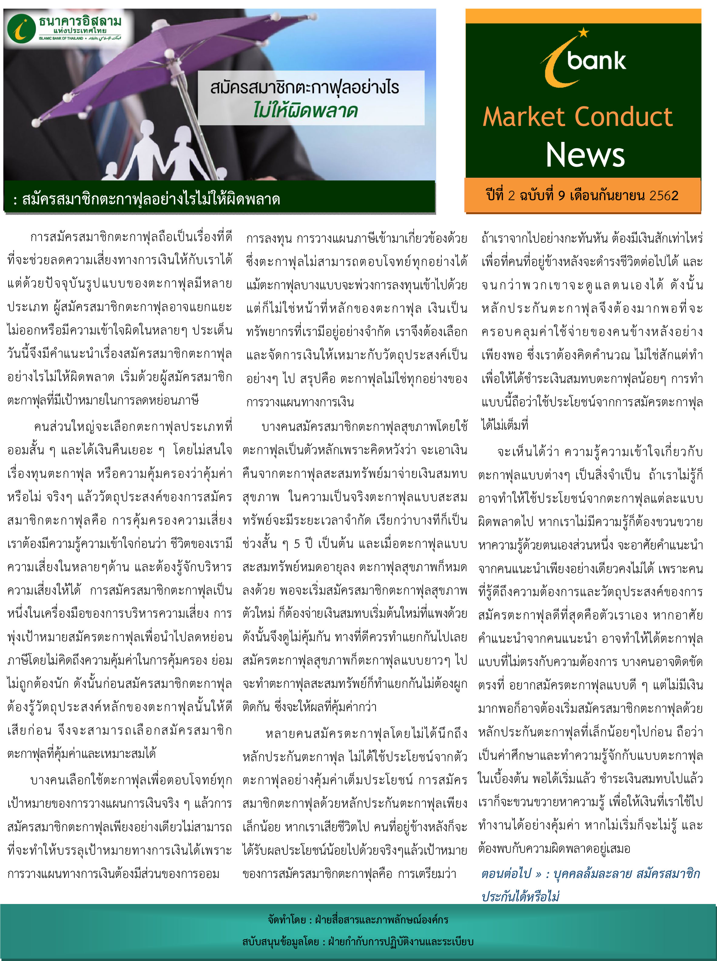 Home About us News & Activities Articles iBank Market Conduct News : ปีที่ 2 ฉบับที่ 9 เดือนกันยายน 2562 สมัครสมาชิกตะกาฟุลอย่างไรไม่ให้ผิดพลาด iBank Market Conduct News : ปีที่ 2 ฉบับที่ 9 เดือนกันยายน 2562 สมัครสมาชิกตะกาฟุลอย่างไรไม่ให้ผิดพลาด News & Activities News Articles Multimedia 17 September 2019 share Like 0 Tags