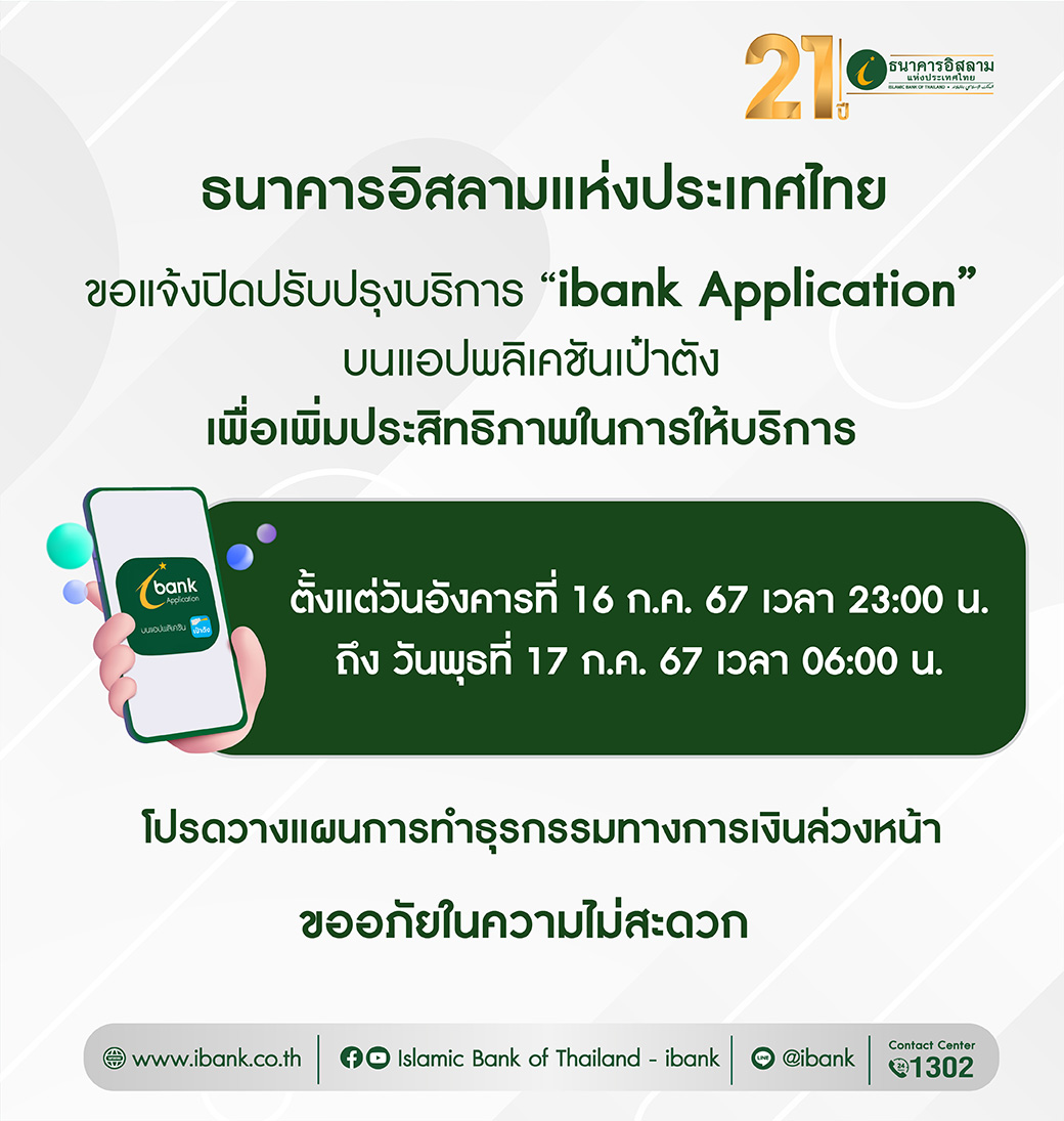 Home About us Announcements Others แจ้งปิดปรับปรุงบริการ "ibank Application" บนแอปพลิเคชันเป๋าตัง แจ้งปิดปรับปรุงบริการ "ibank Application" บนแอปพลิเคชันเป๋าตัง Announcements Procuments Others Career 9 July 2024 share Like 0 Tags