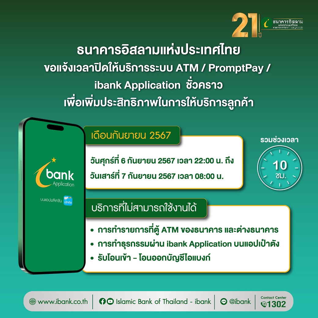 Home About us Announcements Others ไอแบงก์ ขอแจ้งเวลาปิดบริการระบบ ATM / PromptPay / ibank Application เพื่อเพิ่มประสิทธิภาพในการให้บริการ ไอแบงก์ ขอแจ้งเวลาปิดบริการระบบ ATM / PromptPay / ibank Application เพื่อเพิ่มประสิทธิภาพในการให้บริการ Announcements Procuments Others Career 29 August 2024 share Like 0 Tags