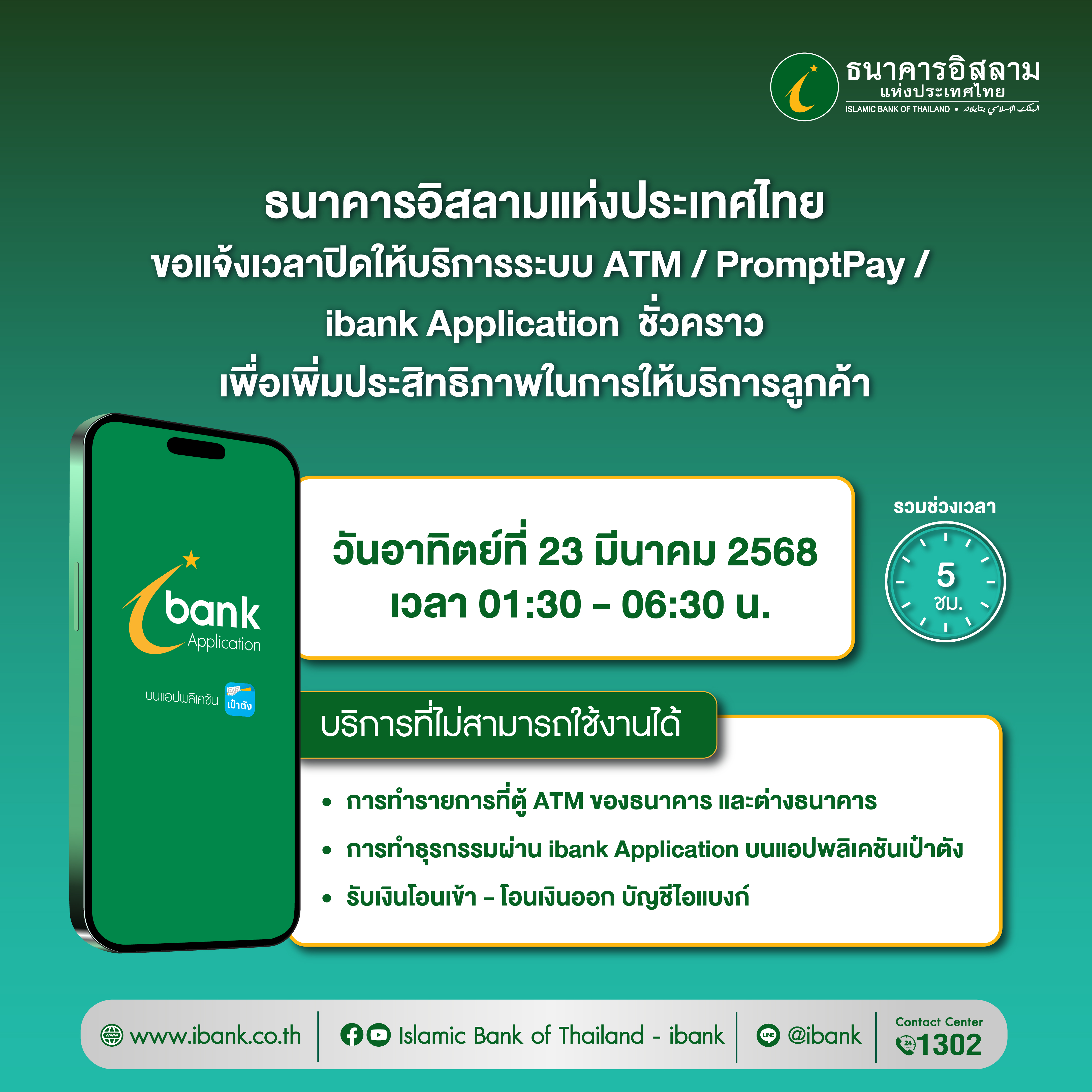 Home About us Announcements Others ไอแบงก์ ขอแจ้งเวลาปิดบริการระบบ ATM / PromptPay / ibank Application เพื่อเพิ่มประสิทธิภาพในการให้บริการ ไอแบงก์ ขอแจ้งเวลาปิดบริการระบบ ATM / PromptPay / ibank Application เพื่อเพิ่มประสิทธิภาพในการให้บริการ Announcements Procuments Others Career 13 March 2025 share Like 0 Tags