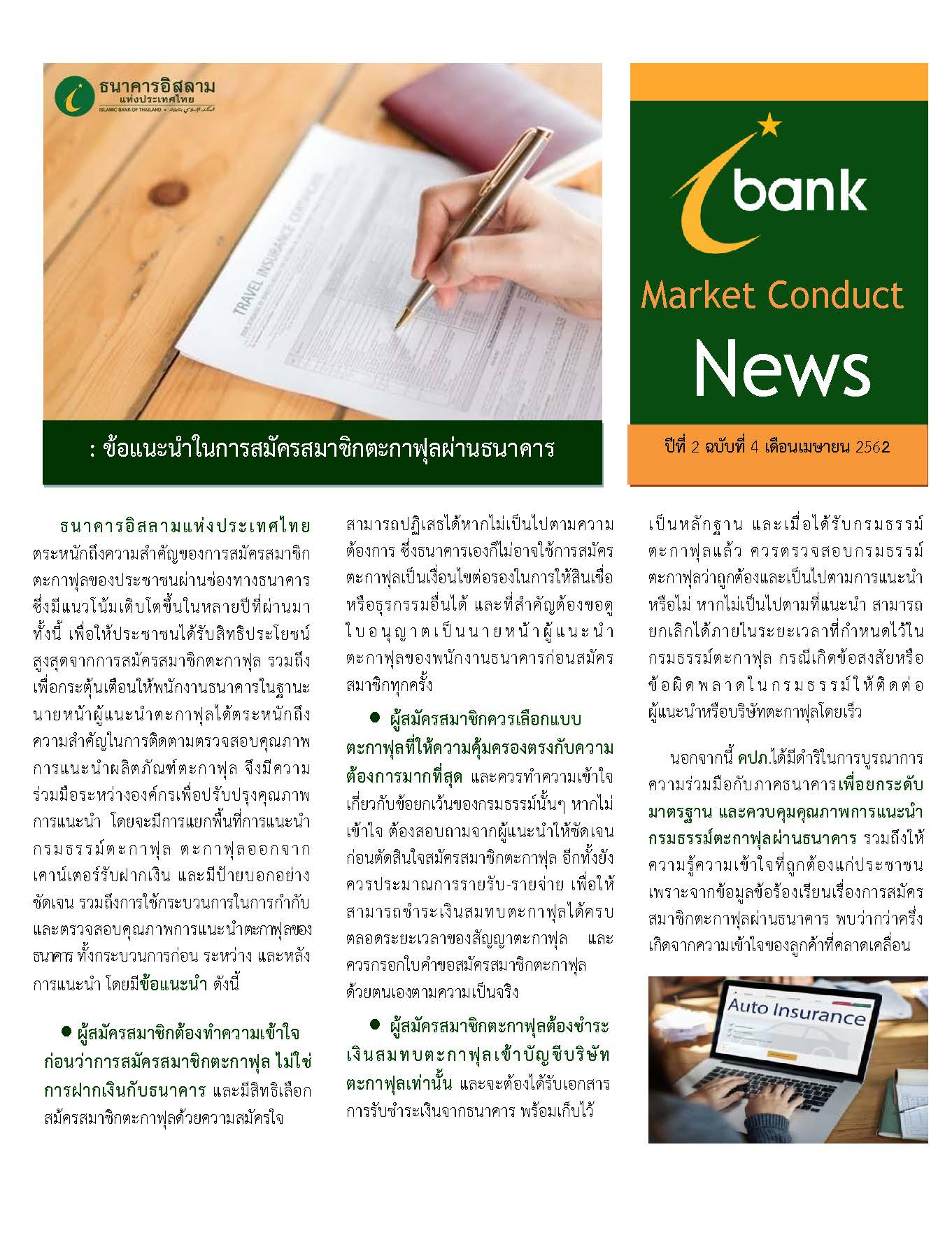- iBank Market Conduct News : ปีที่ 2 ฉบับที่ 4 เดือนเมษายน 2562 ข้อแนะนำในการสมัครสมาชิกตะกาฟุลผ่านธนาคาร
