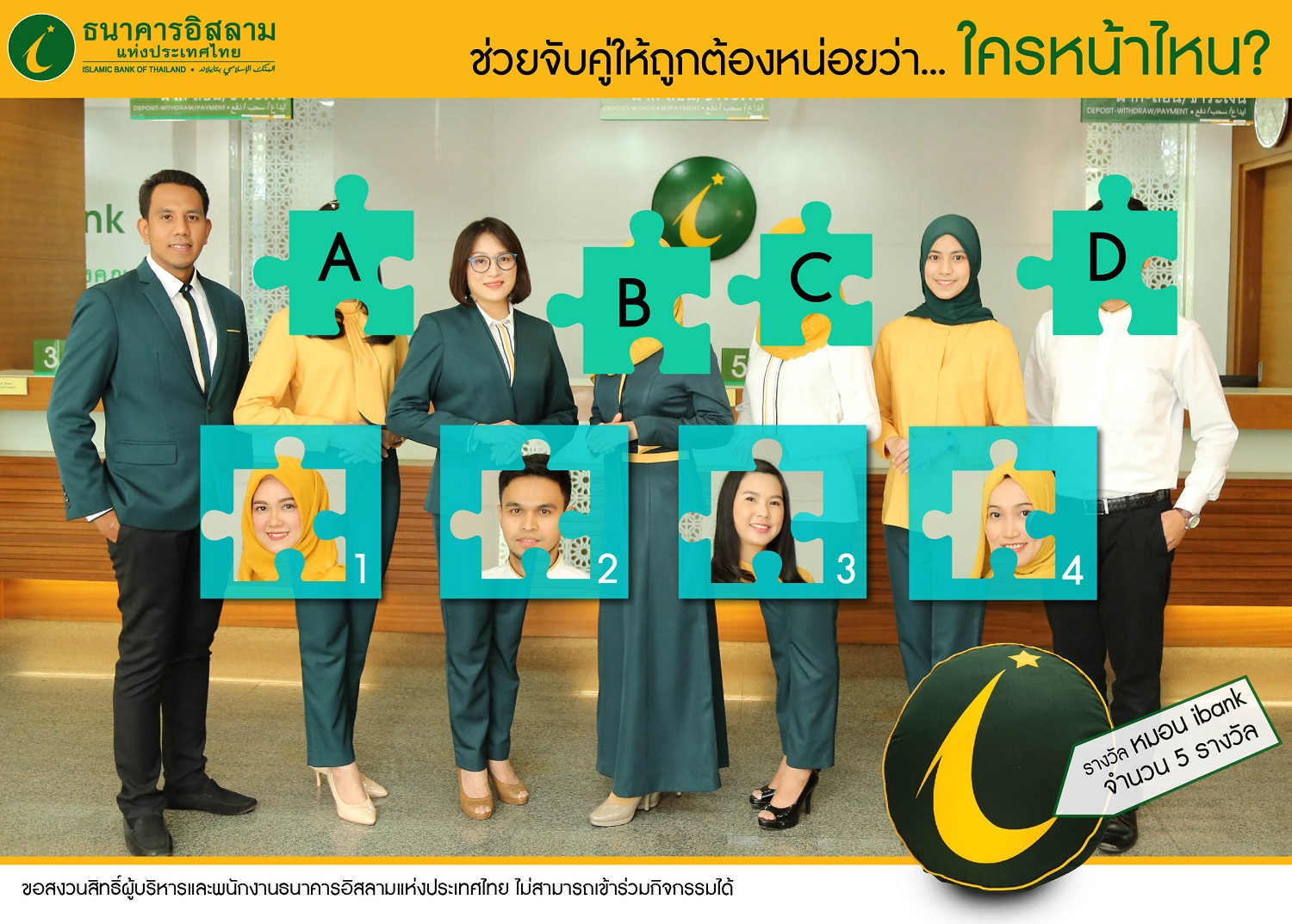 ขอเชิญชวนเพื่อนๆ มาร่วมสนกจับคู่ให้ถูกต้องหน่อยว่า ใครหน้าไหน? แค่ตอบมาว่า ภาพ1 2 3 และ 4 ตรงกับบุคคลใด A B C หรือ D เช่น 1=A/2=B/3=C/4=D แล้วติดแฮซแท็ก #ไอแบงก์ใครๆก็ใช้ได้ ผู้ที่ตอบถูกจะได้รับของที่ระลึกจากธนาคาร จำนวน 5 รางวัล หากมีผู้ตอบถูกมากกว่า 5 ท่าน คณะกรรมการจะใช้วิธีจับสลากหาชื่อผู้ได้รับรางวัล จำนวน 5 ท่าน ขอบอกใบ้ว่าภาพนี้เป็นภาพข่าวที่เราเคยลงข่าวบนเพจ ของเรา ในเดือนกันยายนที่ผ่านมา มาครับ