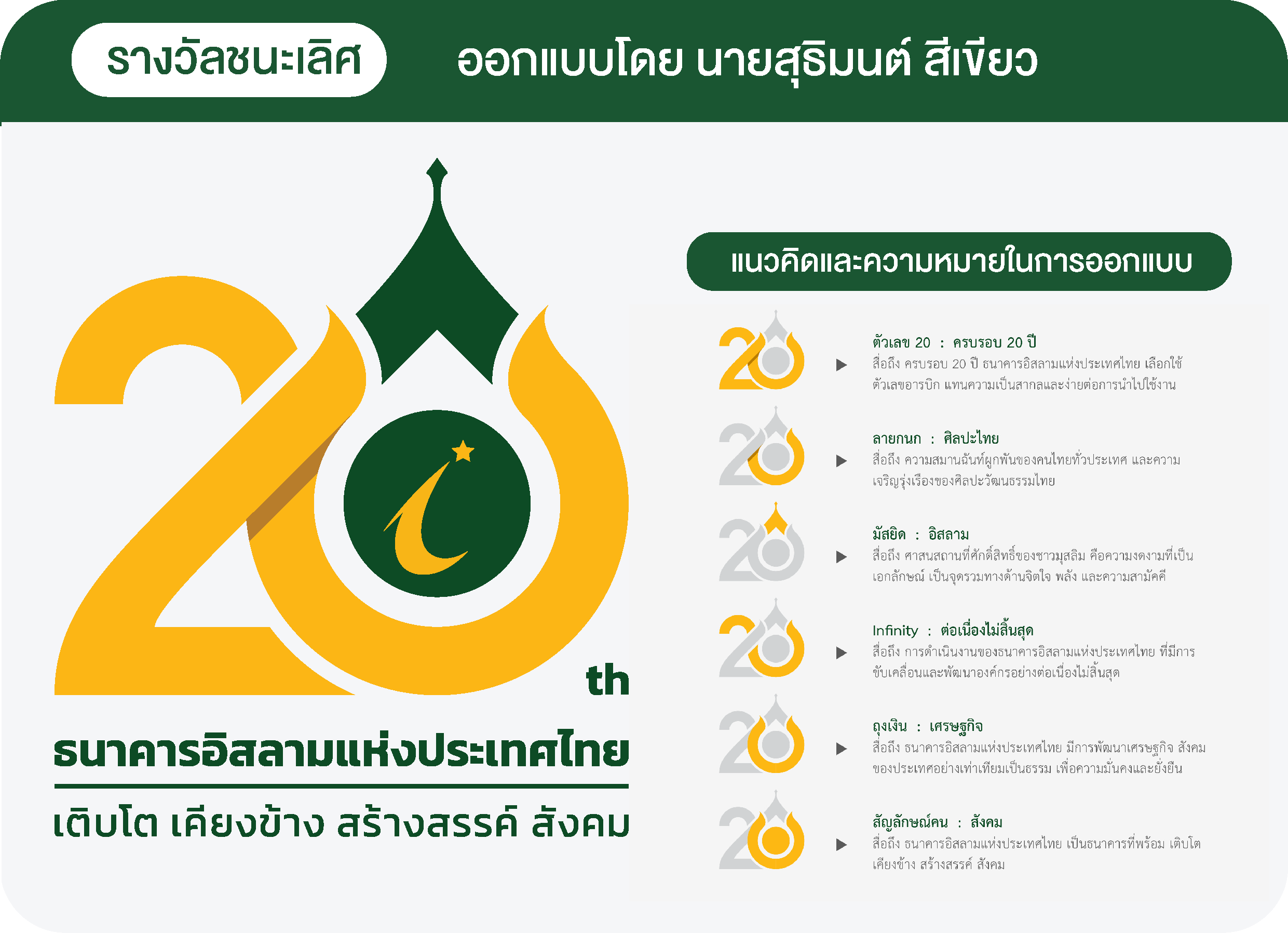 ไอแบงก์ ประกาศผลการตัดสินการประกวดออกแบบตราสัญลักษณ์ และคำขวัญ (Slogan) ครบรอบ 20 ปี ธนาคารอิสลามแห่งประเทศไทย
