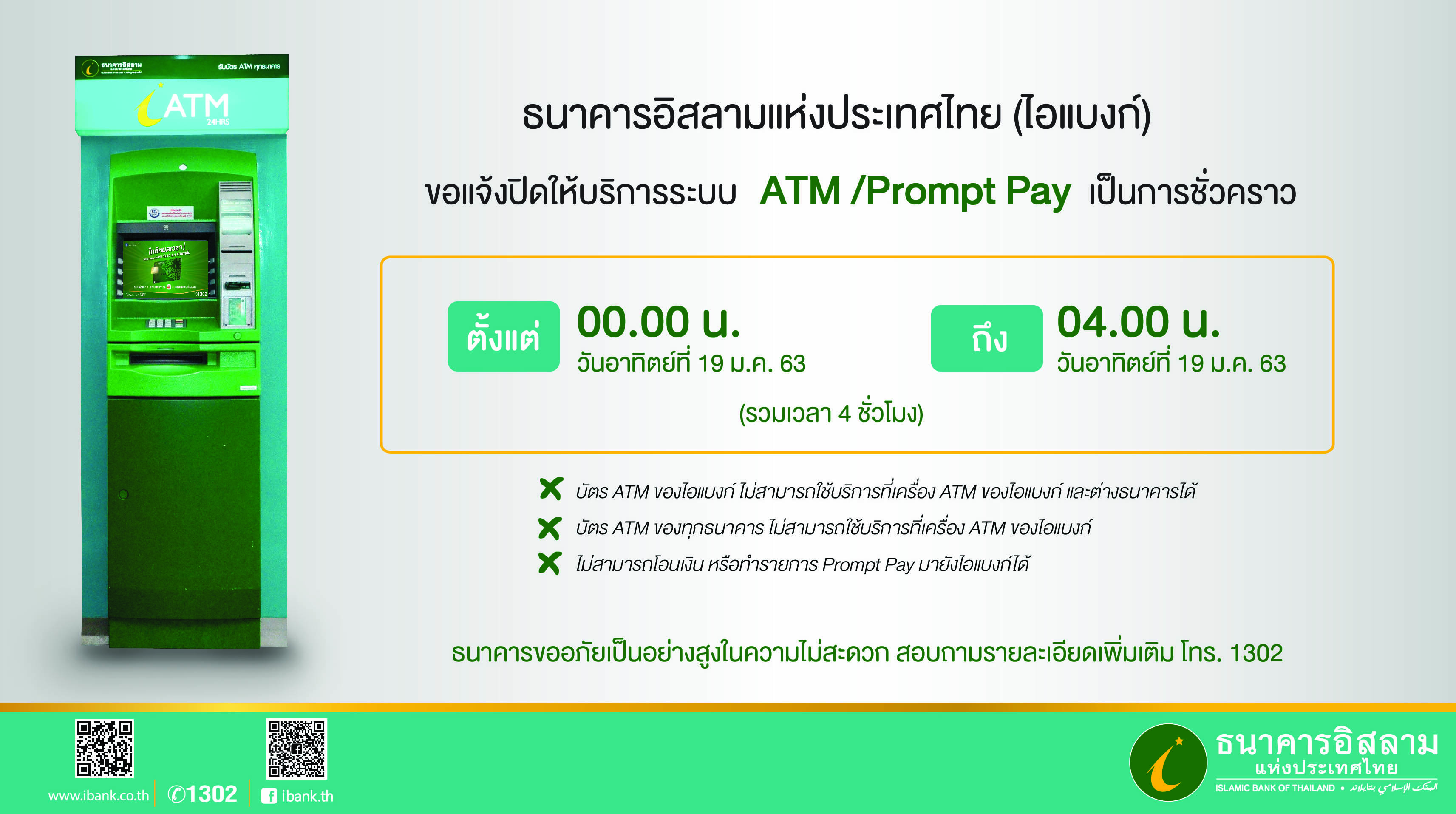 หน้าหลัก เกี่ยวกับ ibank ประกาศธนาคาร ประกาศอื่น ประกาศ ปิดให้บริการระบบ ATM /Prompt Pay ชั่วคราว ประกาศ ปิดให้บริการระบบ ATM /Prompt Pay ชั่วคราว ประกาศธนาคาร ประกาศจัดซื้อจัดจ้าง ประกาศอื่น ร่วมงานกับ ibank 17 มกราคม 2563 share Like 0 Tags