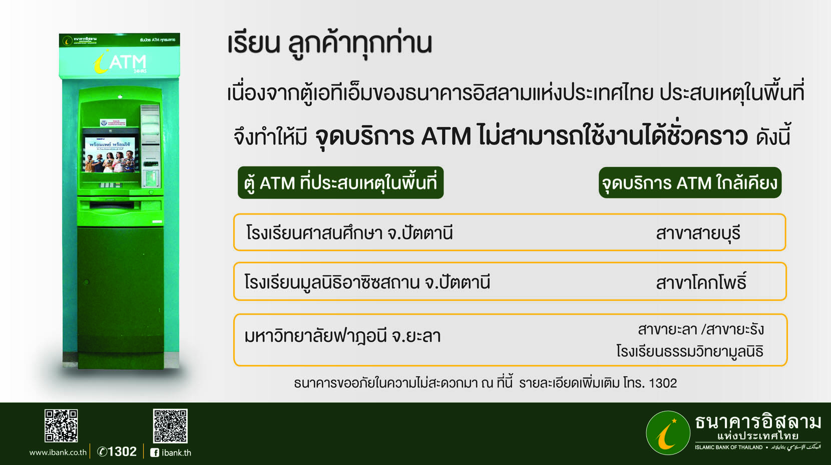 หน้าหลัก เกี่ยวกับ ibank ประกาศธนาคาร ประกาศอื่น ประกาศ!! แจ้งจุดบริการ ATM ที่ไม่สามารถใช้งานได้ชั่วคราว ประกาศ!! แจ้งจุดบริการ ATM ที่ไม่สามารถใช้งานได้ชั่วคราว ประกาศธนาคาร ประกาศจัดซื้อจัดจ้าง ประกาศอื่น ร่วมงานกับ ibank 7 สิงหาคม 2562 share ประกาศ!! แจ้งจุดบริการ ATM ที่ไม่สามารถใช้งานได้ชั่วคราว ธนาคารขออภัยในความไม่สะดวกมา ณ ที่นี้ รายละเอียดเพิ่มเติม โทร.1302 Like 0 Tags