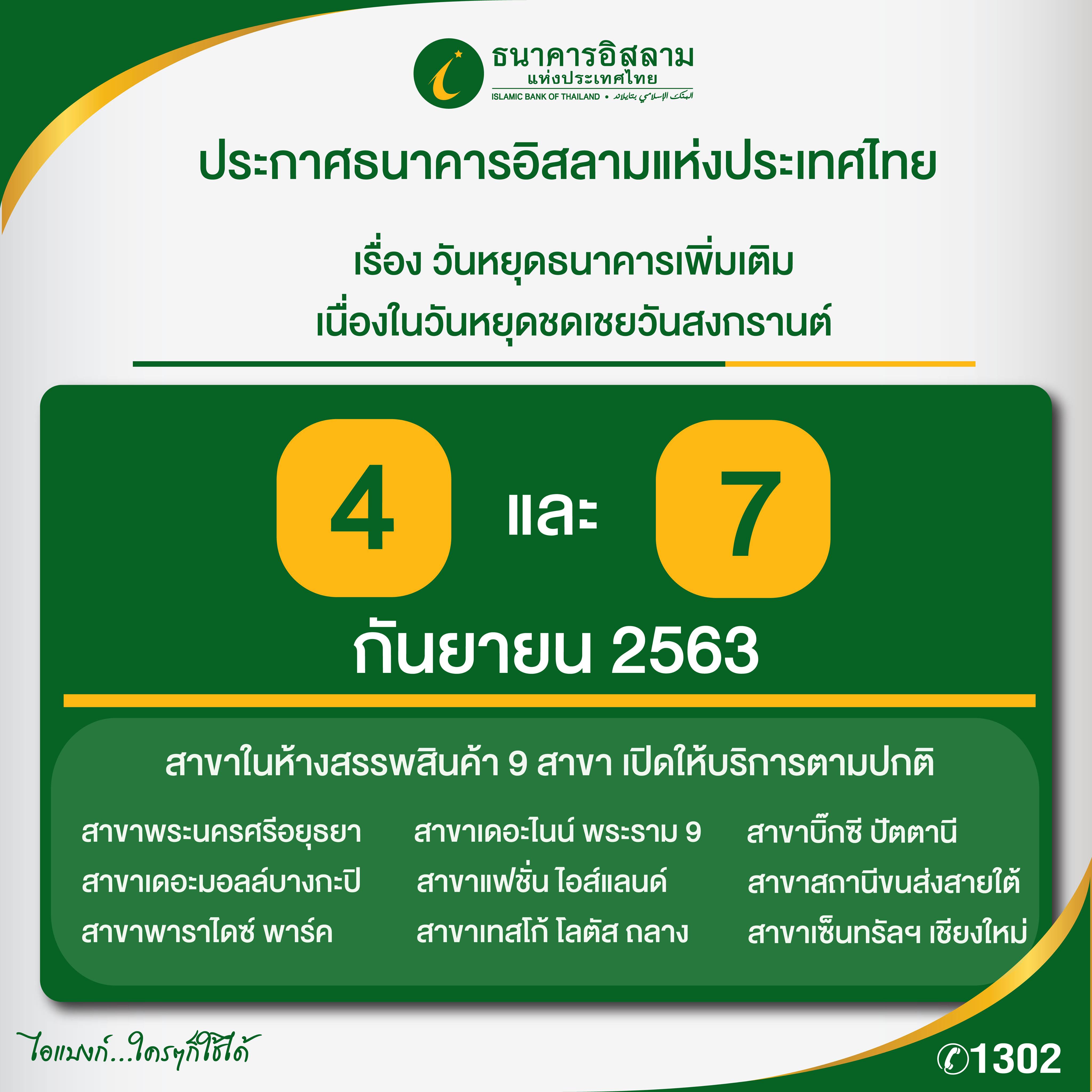 หน้าหลัก เกี่ยวกับ ibank ประกาศธนาคาร ประกาศอื่น ประกาศวันหยุดธนาคารเพิ่มเติม เนื่องในวันหยุดชดเชยวันสงกรานต์ ประกาศวันหยุดธนาคารเพิ่มเติม เนื่องในวันหยุดชดเชยวันสงกรานต์ ประกาศธนาคาร ประกาศจัดซื้อจัดจ้าง ประกาศอื่น ร่วมงานกับ ibank 1 กันยายน 2563 share Like 0 Tags