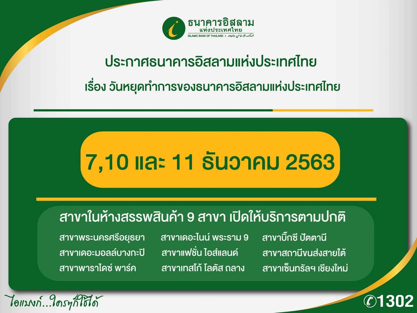 หน้าหลัก เกี่ยวกับ ibank ประกาศธนาคาร ประกาศอื่น ประกาศธนาคารอิสลามแห่งประเทศไทย เรื่องวันหยุด ประกาศธนาคารอิสลามแห่งประเทศไทย เรื่องวันหยุด ประกาศธนาคาร ประกาศจัดซื้อจัดจ้าง ประกาศอื่น ร่วมงานกับ ibank 9 ธันวาคม 2563 share Like 0 Tags