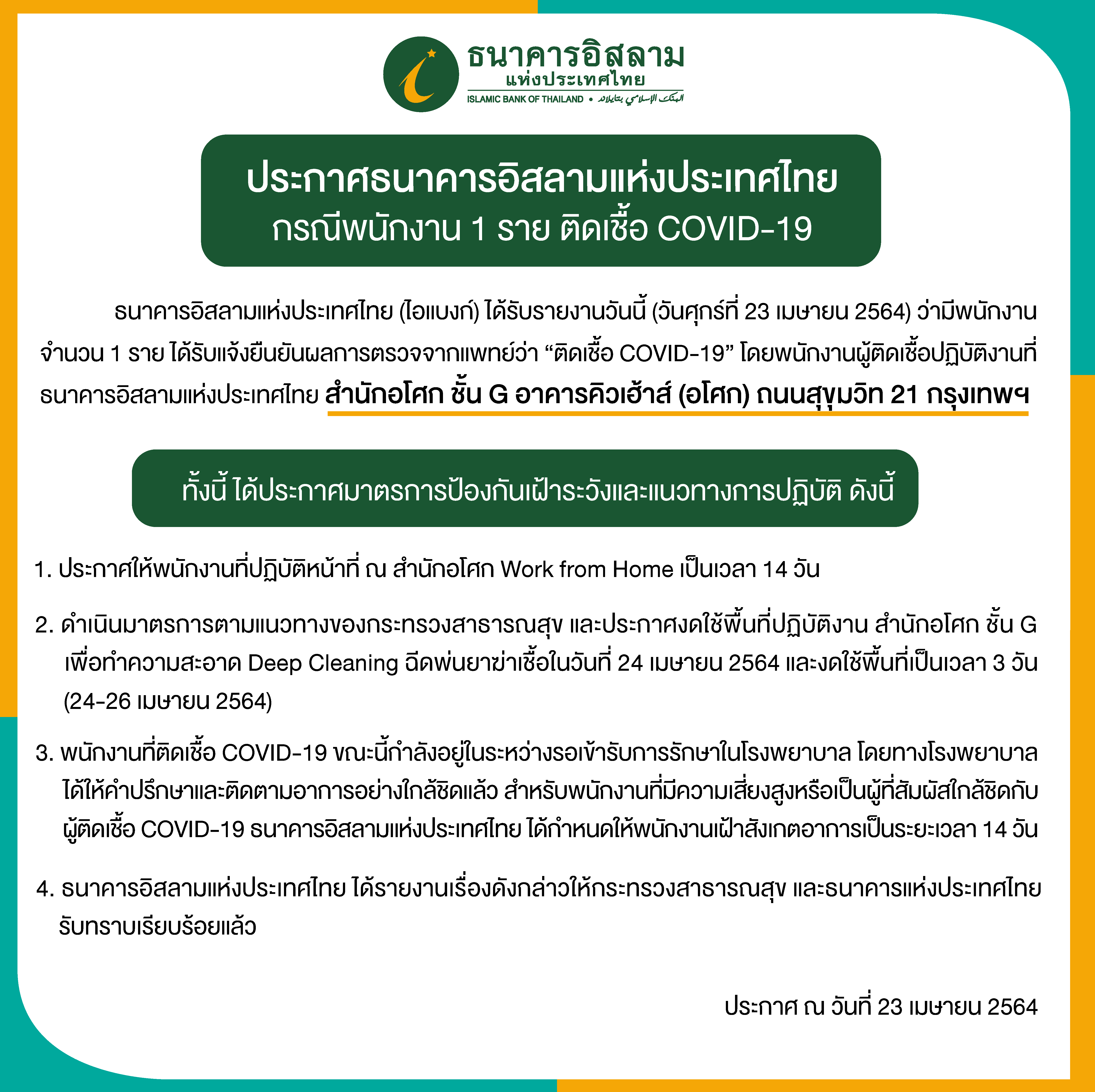 หน้าหลัก เกี่ยวกับ ibank ประกาศธนาคาร ประกาศอื่น ประกาศธนาคารอิสลามแห่งประเทศไทย กรณีพนักงาน 1 ราย ติดเชื้อ COVID-19 ประกาศธนาคารอิสลามแห่งประเทศไทย กรณีพนักงาน 1 ราย ติดเชื้อ COVID-19 ประกาศธนาคาร ประกาศจัดซื้อจัดจ้าง ประกาศอื่น ร่วมงานกับ ibank 23 เมษายน 2564 share Like 0 Tags