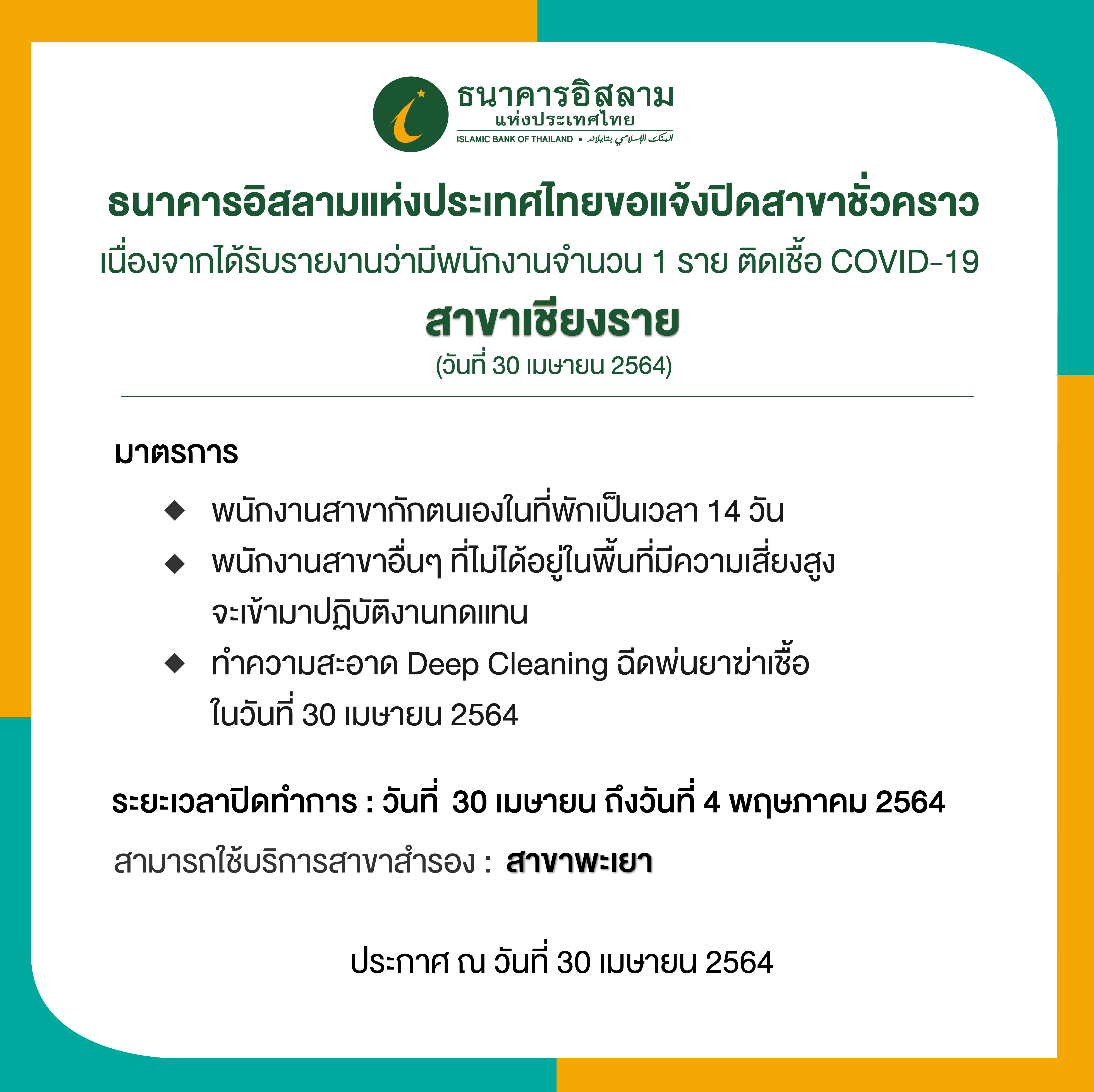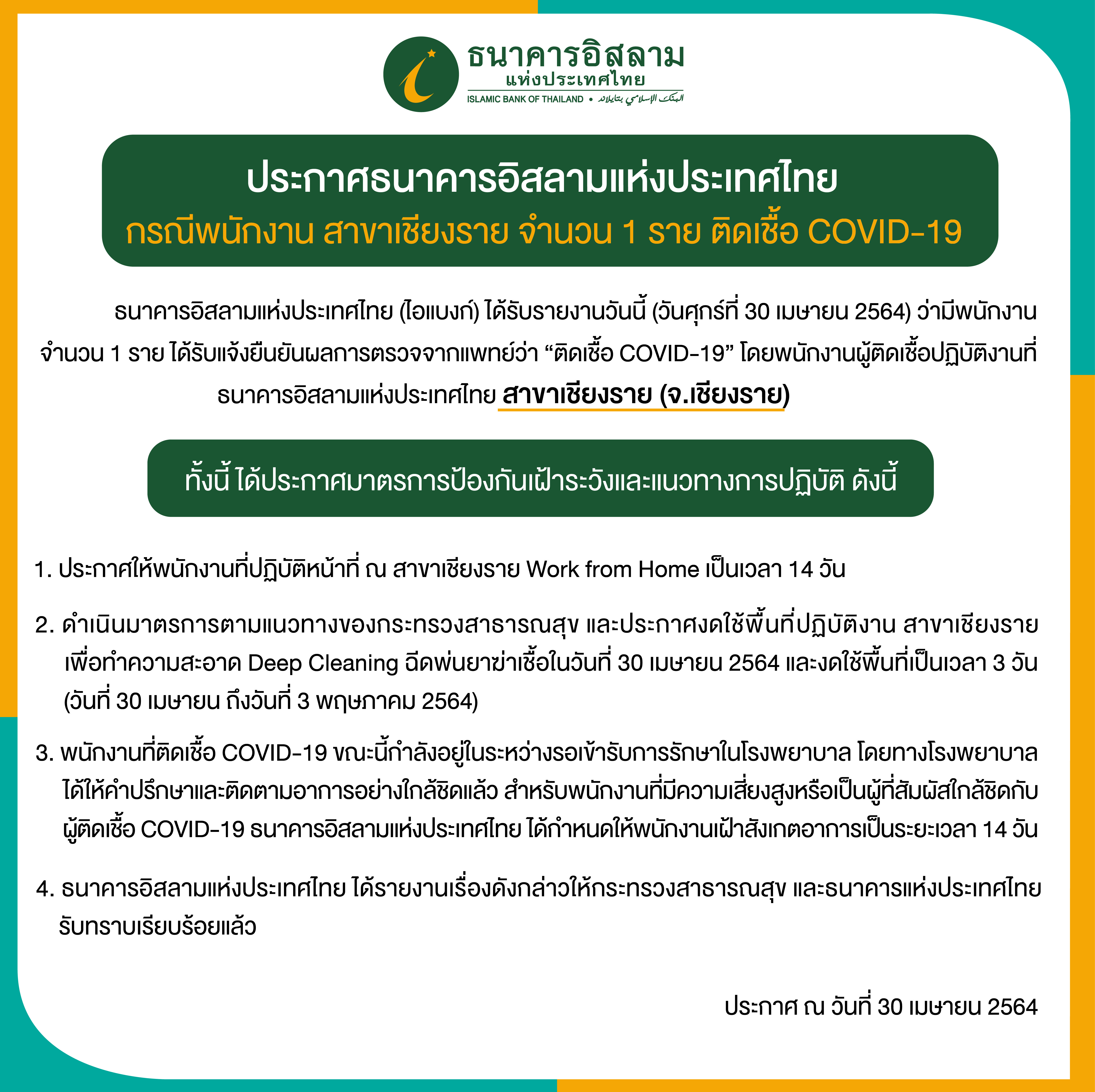 หน้าหลัก เกี่ยวกับ ibank ประกาศธนาคาร ประกาศอื่น ประกาศธนาคารอิสลามแห่งประเทศไทย กรณีพนักงานสาขาเชียงราย จำนวน 1 ราย ติดเชื้อ COVID-19 ประกาศธนาคารอิสลามแห่งประเทศไทย กรณีพนักงานสาขาเชียงราย จำนวน 1 ราย ติดเชื้อ COVID-19 ประกาศธนาคาร ประกาศจัดซื้อจัดจ้าง ประกาศอื่น ร่วมงานกับ ibank 30 เมษายน 2564 share Like 0 Tags