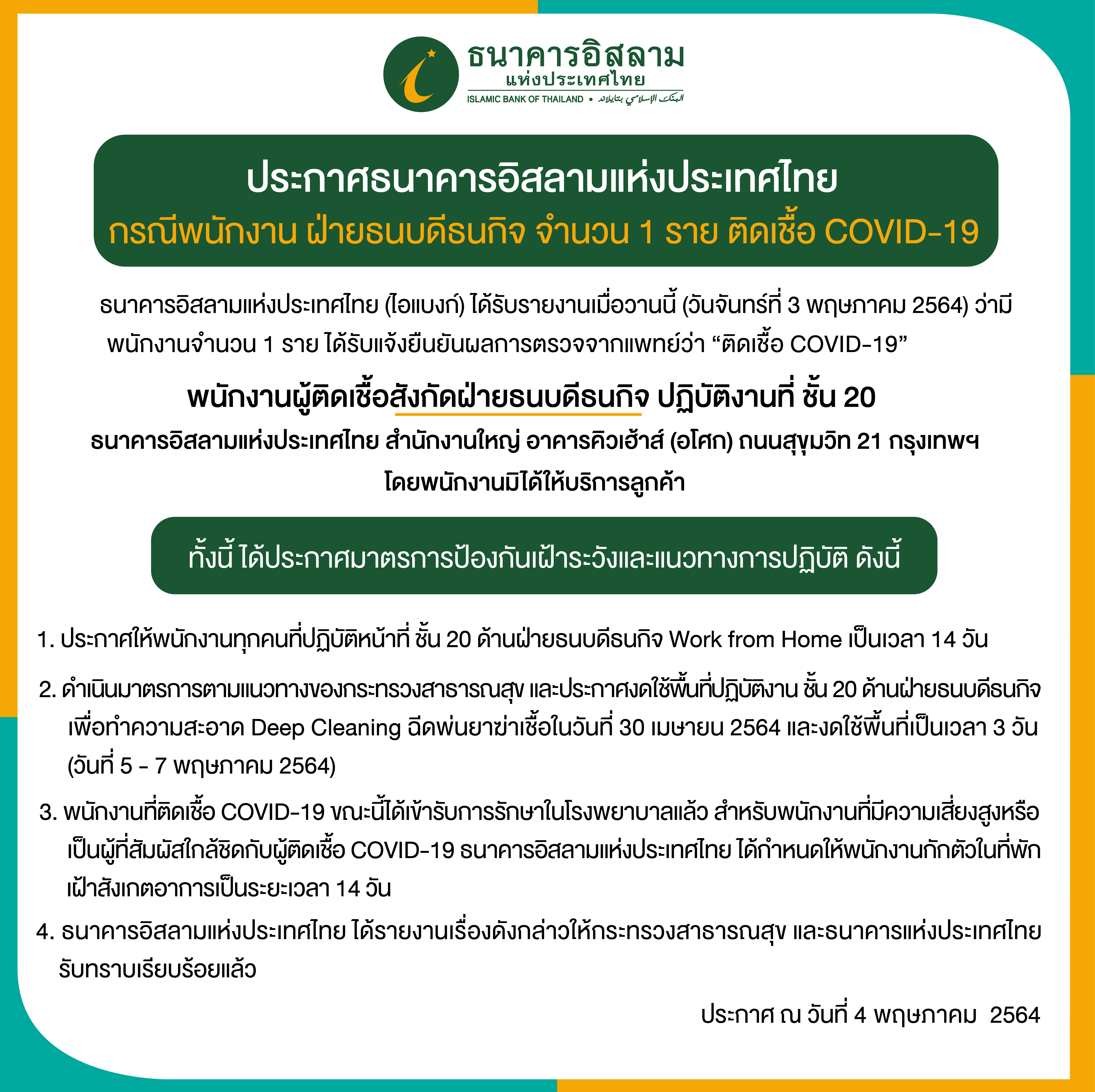 หน้าหลัก เกี่ยวกับ ibank ประกาศธนาคาร ประกาศอื่น ประกาศธนาคารอิสลามแห่งประเทศไทย กรณีพนักงาน ฝ่ายธนบดีธนกิจ ประกาศธนาคารอิสลามแห่งประเทศไทย กรณีพนักงาน ฝ่ายธนบดีธนกิจ ประกาศธนาคาร ประกาศจัดซื้อจัดจ้าง ประกาศอื่น ร่วมงานกับ ibank 4 พฤษภาคม 2564 share Like 0 Tags