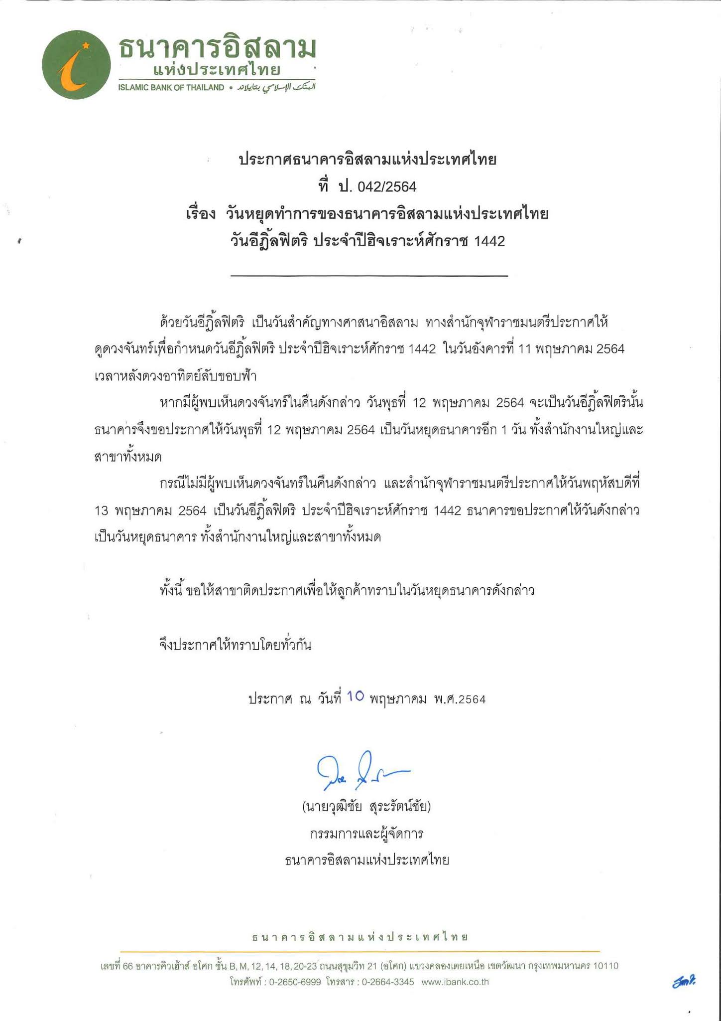 หน้าหลัก เกี่ยวกับ ibank ประกาศธนาคาร ประกาศอื่น ประกาศธนาคารอิสลามแห่งประเทศไทย เรื่องวันหยุดทำการของธนาคารอิสลามแห่งประเทศไทย วันอีฎิลฟิตริ ประกาศธนาคารอิสลามแห่งประเทศไทย เรื่องวันหยุดทำการของธนาคารอิสลามแห่งประเทศไทย วันอีฎิลฟิตริ ประกาศธนาคาร ประกาศจัดซื้อจัดจ้าง ประกาศอื่น ร่วมงานกับ ibank 12 พฤษภาคม 2564 share Like 0 Tags