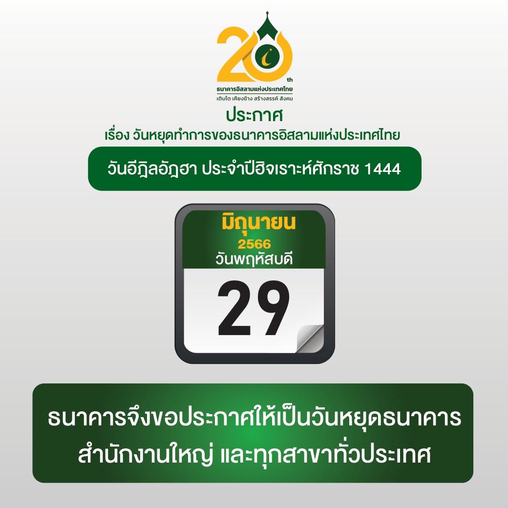 หน้าหลัก เกี่ยวกับ ibank ประกาศธนาคาร ประกาศอื่น ประกาศ เรื่องวันหยุดทำการของธนาคารอิสลามแห่งประเทศไทย ประกาศ เรื่องวันหยุดทำการของธนาคารอิสลามแห่งประเทศไทย ประกาศธนาคาร ประกาศจัดซื้อจัดจ้าง ประกาศอื่น ร่วมงานกับ ibank 28 มิถุนายน 2566 share Like 0 Tags