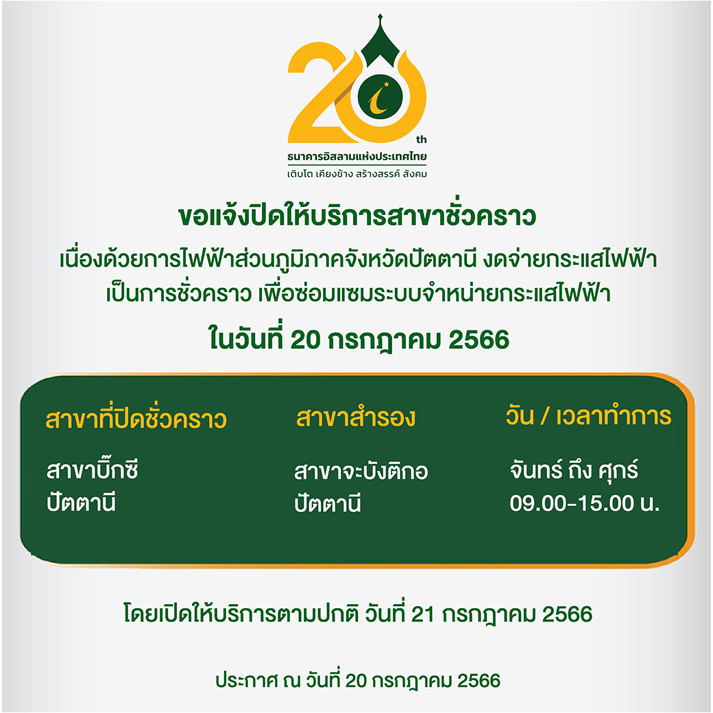 หน้าหลัก เกี่ยวกับ ibank ประกาศธนาคาร ประกาศอื่น ไอแบงก์ ขอแจ้งปิดให้บริการสาขาบิ๊กซี ปัตตานี ชั่วคราว ไอแบงก์ ขอแจ้งปิดให้บริการสาขาบิ๊กซี ปัตตานี ชั่วคราว ประกาศธนาคาร ประกาศจัดซื้อจัดจ้าง ประกาศอื่น ร่วมงานกับ ibank 20 กรกฎาคม 2566 share Like 0 Tags