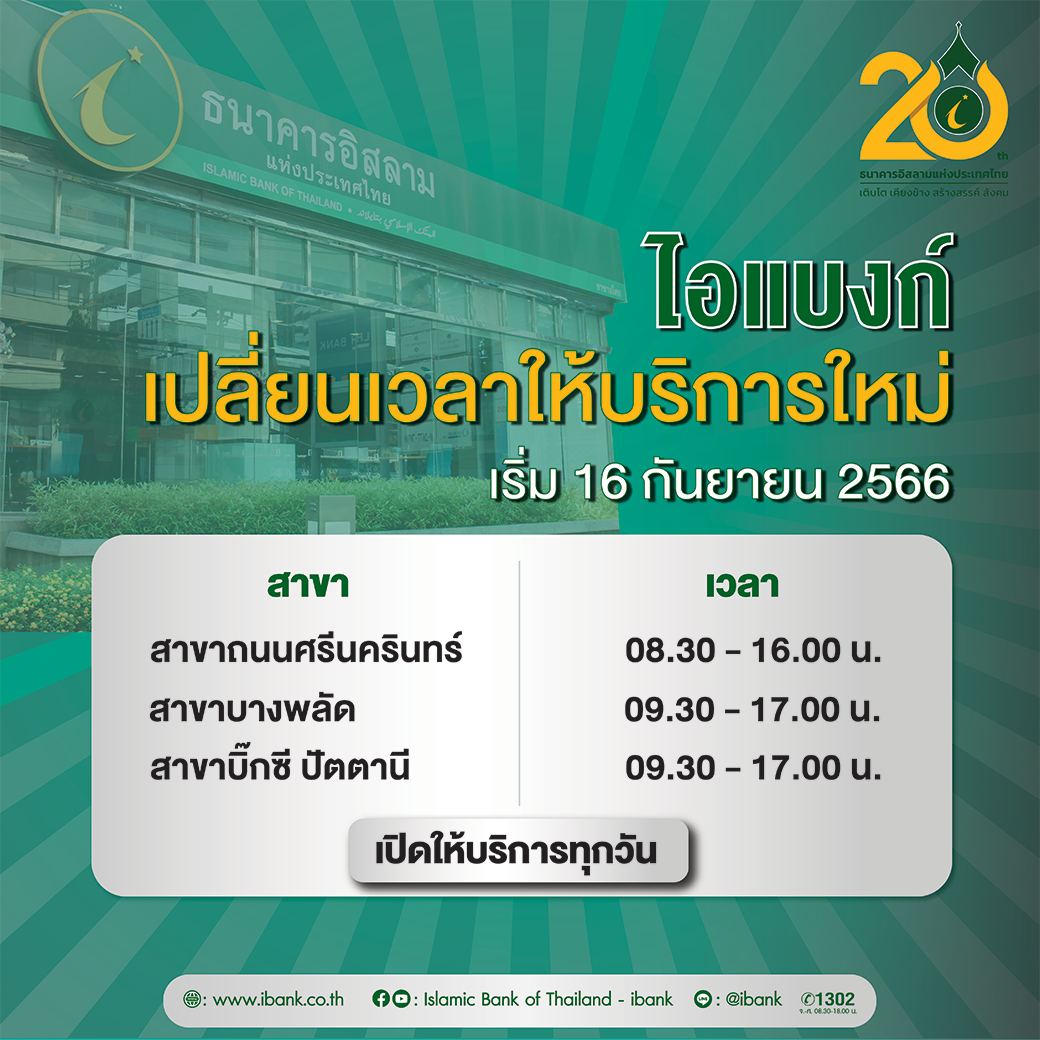 หน้าหลัก เกี่ยวกับ ibank ประกาศธนาคาร ประกาศอื่น ไอแบงก์ เปลี่ยนเวลาให้บริการใหม่ 3 สาขา ไอแบงก์ เปลี่ยนเวลาให้บริการใหม่ 3 สาขา ประกาศธนาคาร ประกาศจัดซื้อจัดจ้าง ประกาศอื่น ร่วมงานกับ ibank 18 สิงหาคม 2566 share Like 0 Tags
