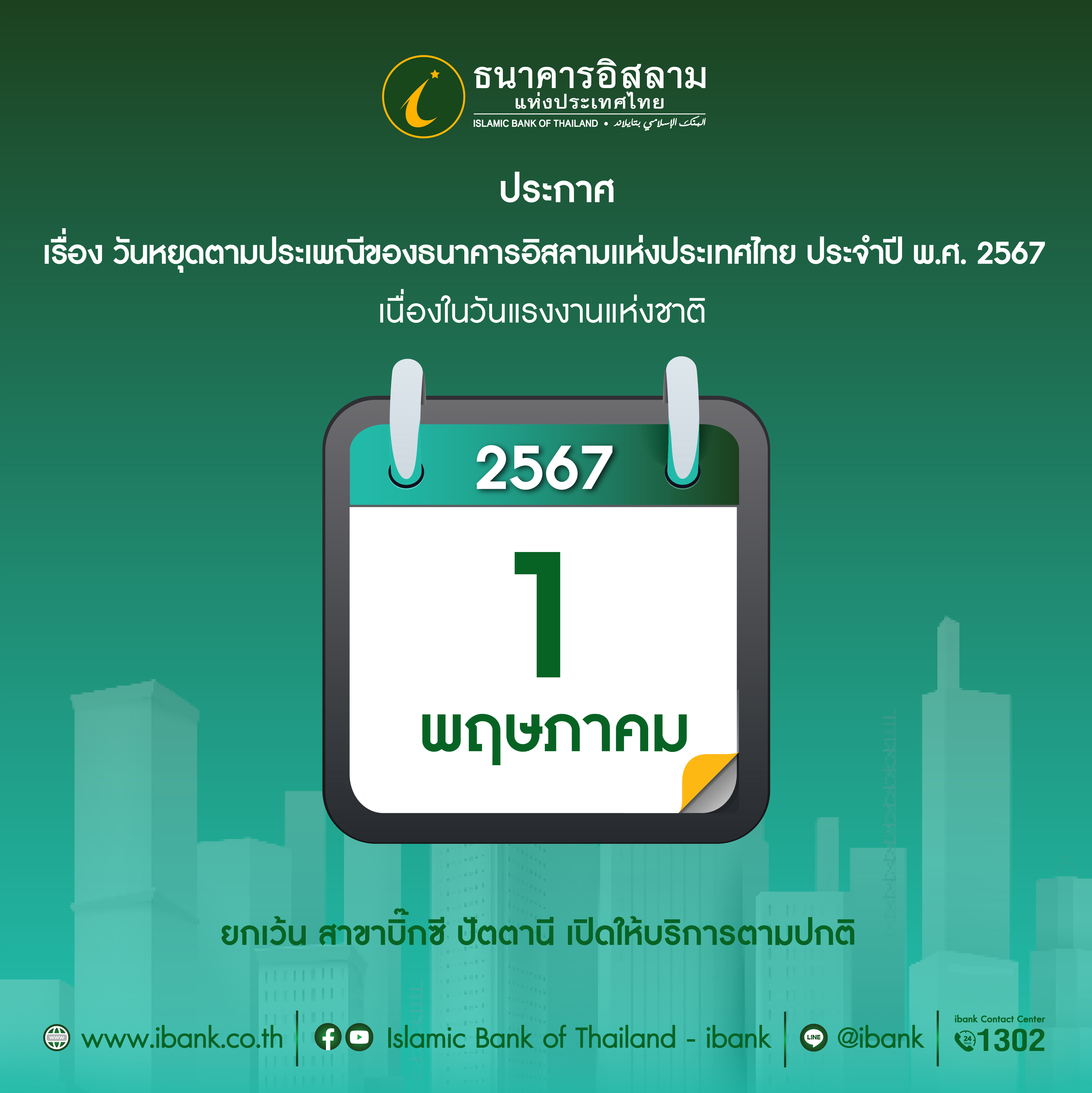 หน้าหลัก เกี่ยวกับ ibank ประกาศธนาคาร ประกาศอื่น ประกาศวันหยุดตามประเพณีของธนาคารอิสลามแห่งประเทศไทย ประจำปี พ.ศ. 2567 ประกาศวันหยุดตามประเพณีของธนาคารอิสลามแห่งประเทศไทย ประจำปี พ.ศ. 2567 ประกาศธนาคาร ประกาศจัดซื้อจัดจ้าง ประกาศอื่น ร่วมงานกับ ibank 30 เมษายน 2567 share Like 0 Tags