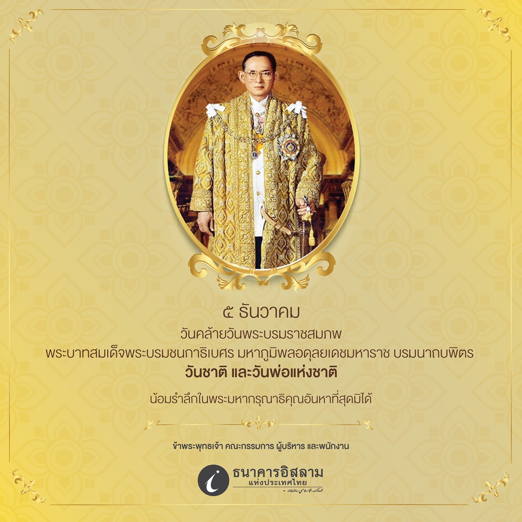 ๕ ธันวาคม เนื่องในวันคล้ายวันพระบรมราชสมภพพระบาทสมเด็จพระบรมชนกาธิเบศร มหาภูมิพลอดุลยเดชมหาราช บรมนาถบพิตร วันชาติ และวันพ่อแห่งชาติ