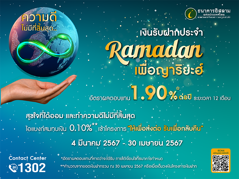 + ดูทั้งหมดเงินรับฝากประจำรอมฎอนเพื่อญาริยะฮ์ รับผลตอบแทนและ ผลบุญไม่สิ้นสุด