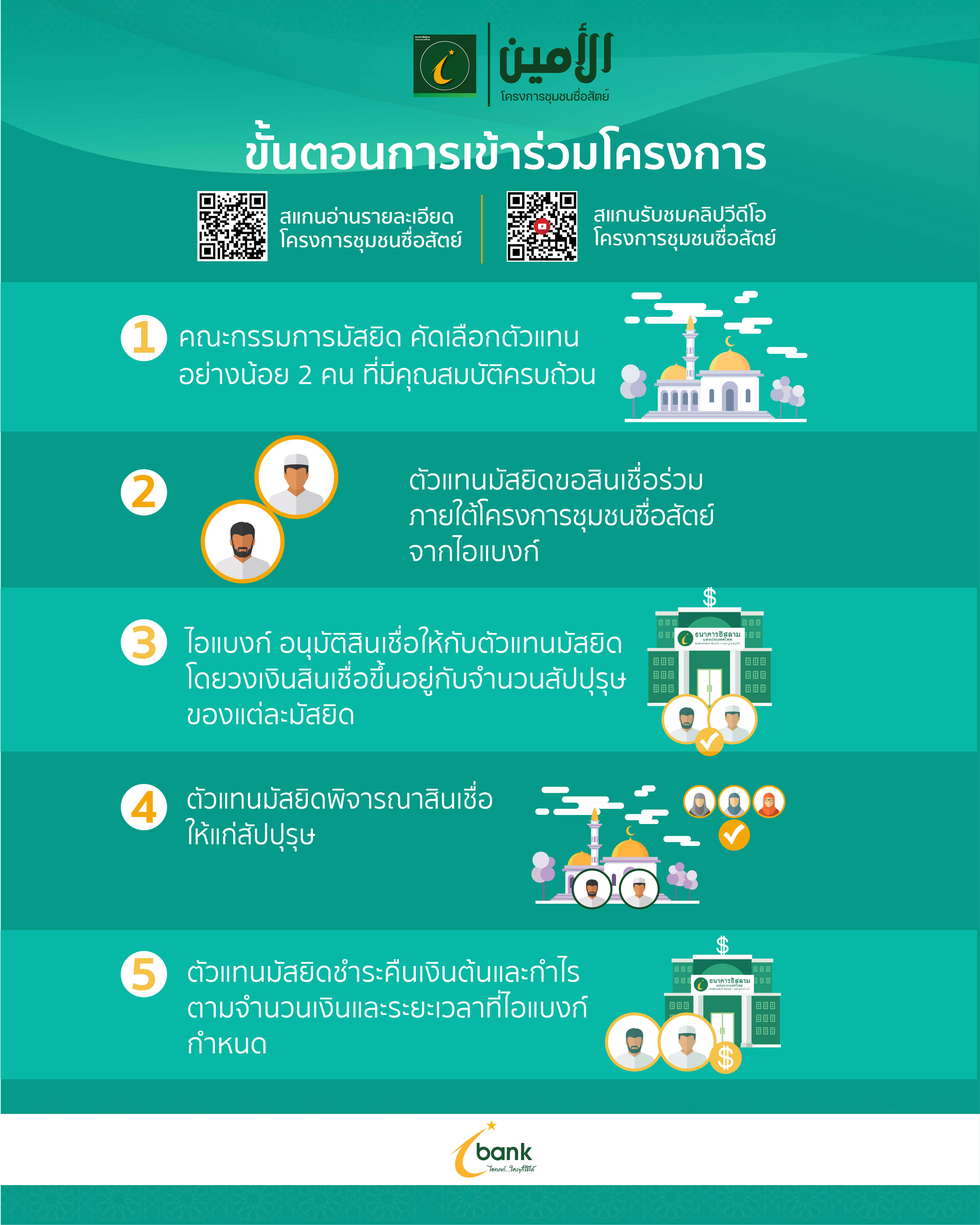 โดยธนาคารจะให้สินเชื่อวงเงินเบิกถอนเงินสด (B-Cash line) ตามหลักบัยอ์ อัลอีนะฮ์ แก่บุคคลผู้ดูแลโครงการ และผู้ดูแลโครงการจะพิจารณาให้สินเชื่อแก่สัปปุรุษต่อรายละไม่เกิน 10,000 บาท