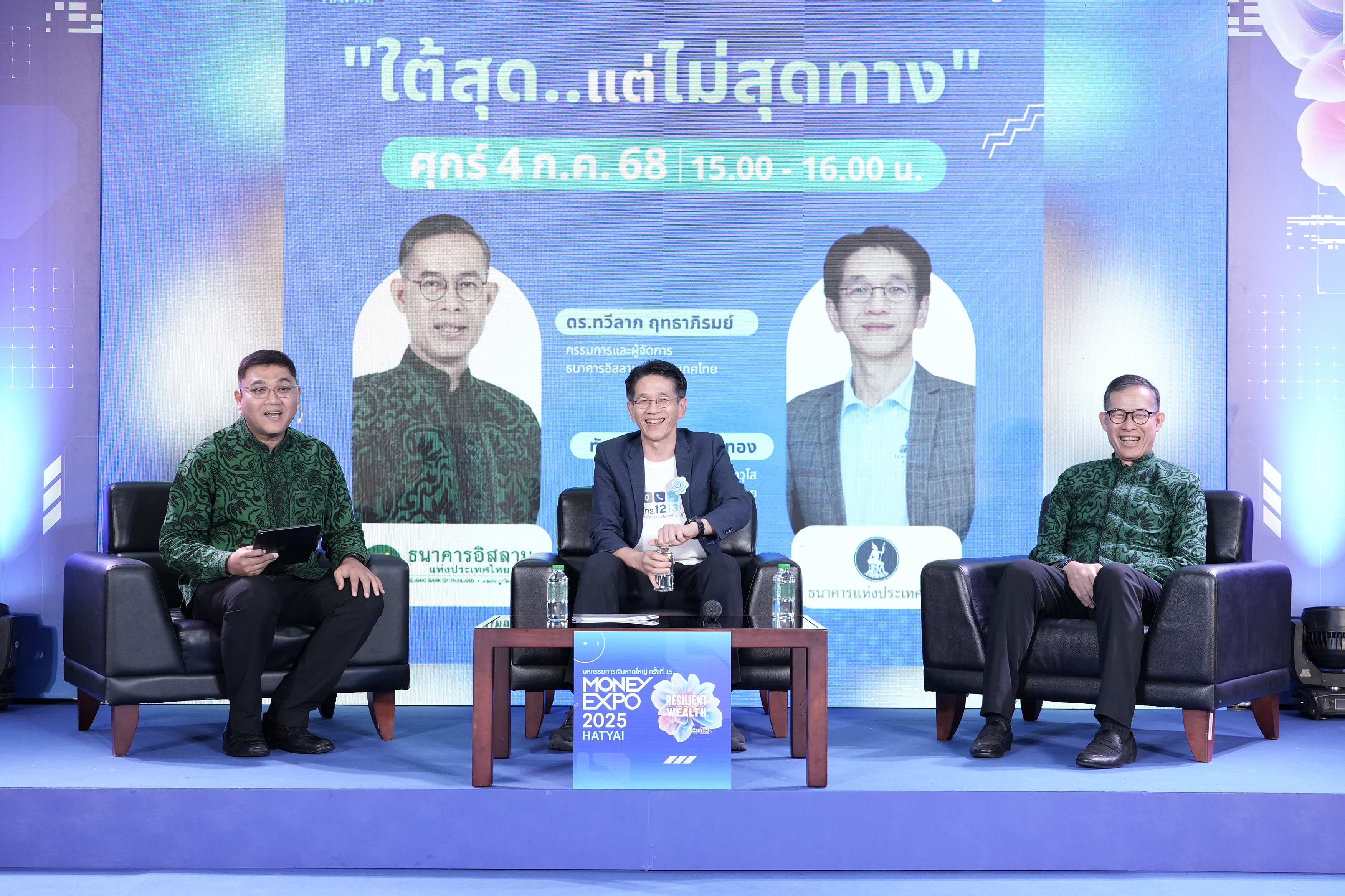 ธนาคารอิสลามแห่งประเทศไทย (ไอแบงก์) ร่วมกับ ธนาคารแห่งประเทศไทย (ธปท.) ร่วมเสวนา หัวข้อ "ใต้สุด..แต่ไม่สุดทาง" ในงานมหกรรมการเงินหาดใหญ่ ครั้งที่ 15 โดยมี ดร.ทวีลาภ ฤทธาภิรมย์ กรรมการและผู้จัดการ ธนาคารอิสลามแห่งประเทศไทย และ นายทัดลาภ เผ่าเหลืองทอง ผู้อำนวยการอาวุโส สำนักงานภาคใต้ ธนาคารแห่งประเทศไทย ร่วมกันเสวนาเพื่อยกระดับคุณภาพชีวิตและเศรษฐกิจพื้นที่ชายแดนใต้ให้ดีขึ้น แม้พื้นที่จะอยู่ใต้สุดของประเทศ แต่เส้นทางแห่งการเติบโตของเศรษฐกิจ สังคม และคุณภาพชีวิต ยังไปได้ไกลกว่านั้น ณ ชั้น 1 เซ็นทรัลเฟสติวัล หาดใหญ่ อ.หาดใหญ่ จ.สงขลา เมื่อวันที่ 4 กรกฎาคม 2568