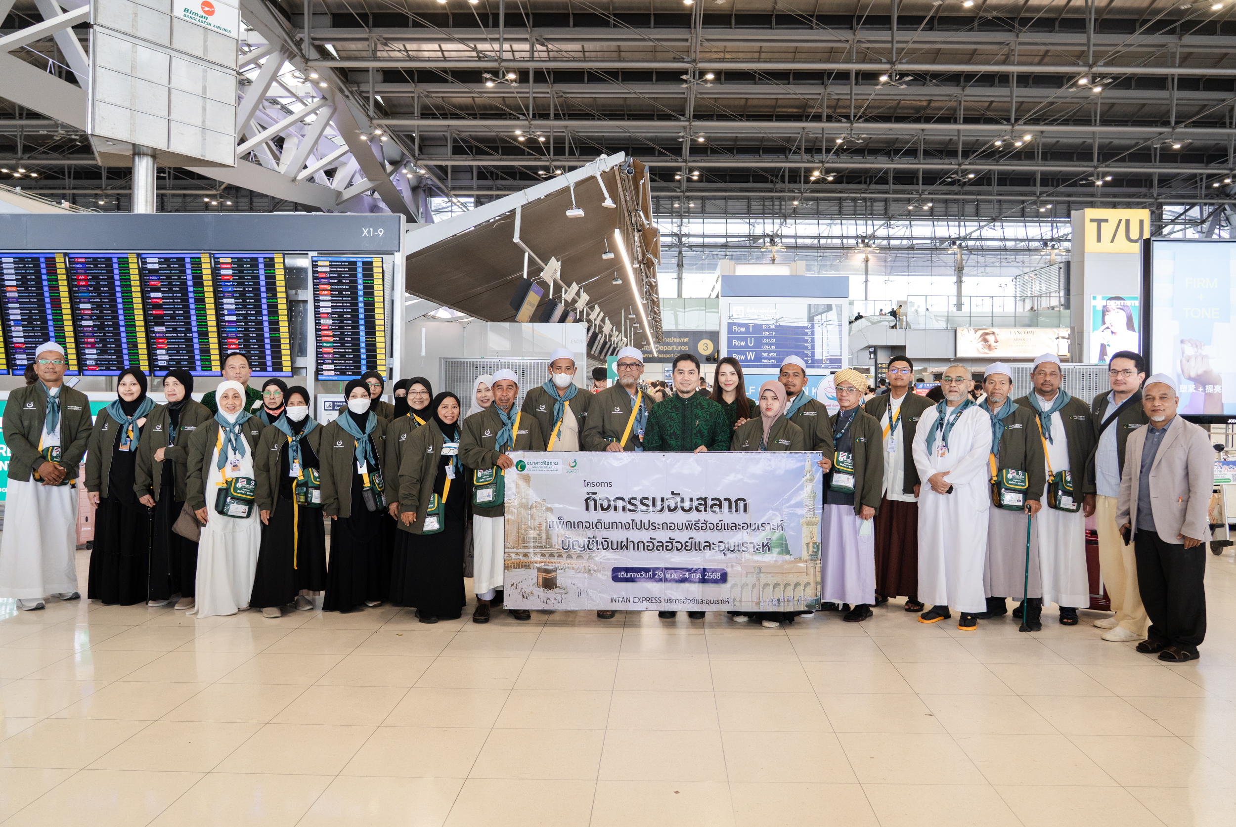วันที่ 29 พฤษภาคม 2568 ธนาคารอิสลามแห่งประเทศไทย (ไอแบงก์) โดย ดร.อาบิดีน วันขวัญ ผู้อำนวยการฝ่าย ฝ่ายผลิตภัณฑ์ชะรีอะฮ์ พร้อมด้วยผู้บริหารสาขา ร่วมอำนวยพรส่งลูกค้าที่ได้รับรางวัลแพ็กเกจเดินทางไปประกอบพิธีฮัจย์ จากแคมเปญเงินรับฝากอัลฮัจย์และอุมเราะห์ ปี 2567 ฟรี จำนวน 20 ท่าน ที่กำลังจะเดินทางไปประกอบพิธีฮัจย์ ณ ประเทศซาอุดีอาระเบีย โดยได้ทำพิธีอำนวยพรให้การเดินทางเพื่อประกอบพิธีฮัจย์เป็นไปโดยสวัสดิภาพและประกอบศาสนกิจได้สำเร็จลุล่วงสมบูรณ์ ณ ท่าอากาศยานสุวรรณภูมิ จ.สมุทรปราการ ท่ามกลางบรรยากาศเต็มไปด้วยความอบอุ่นและปิติยินดี