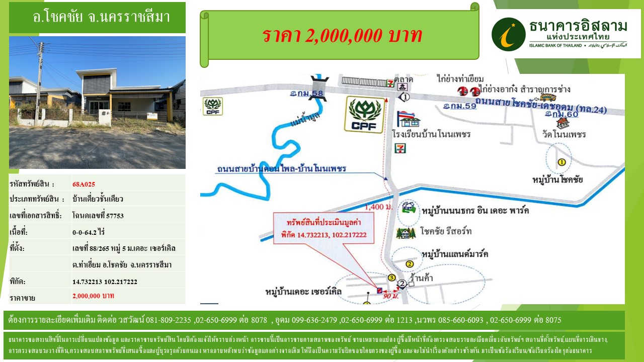 ** ธนาคารขอสงวนสิทธิ์ในการเปลี่ยนแปลงรายละเอียดทรัพย์สิน ราคาขาย รวมถึงเงื่อนไขอื่นใด หรือยกเลิกการขายทรัพย์สินได้ โดยไม่ต้องแจ้งให้ผู้สนใจเสนอซื้อทราบล่วงหน้า ทั้งนี้ ผู้สนใจเสนอซื้อต้องตรวจสอบและศึกษารายละเอียดทรัพย์สินและเอกสารสิทธิ์ด้วยตนเองก่อนการตัดสินใจเสนอซื้อ และธนาคารเป็นอันหลุดพ้นจากความรับผิดชอบอย่างใด ๆ ในทุกกรณี อาทิเช่น รายละเอียดและ/หรือข้อมูลและ/หรือข้อเท็จจริงทรัพย์สินมีความคลาดเคลื่อนกับที่แสดงไว้ ไม่ว่าทั้งหมดและ/หรือบางส่วนหรือเกิดความคลาดเคลื่อนตกหล่นในการจัดพิมพ์ เป็นต้น