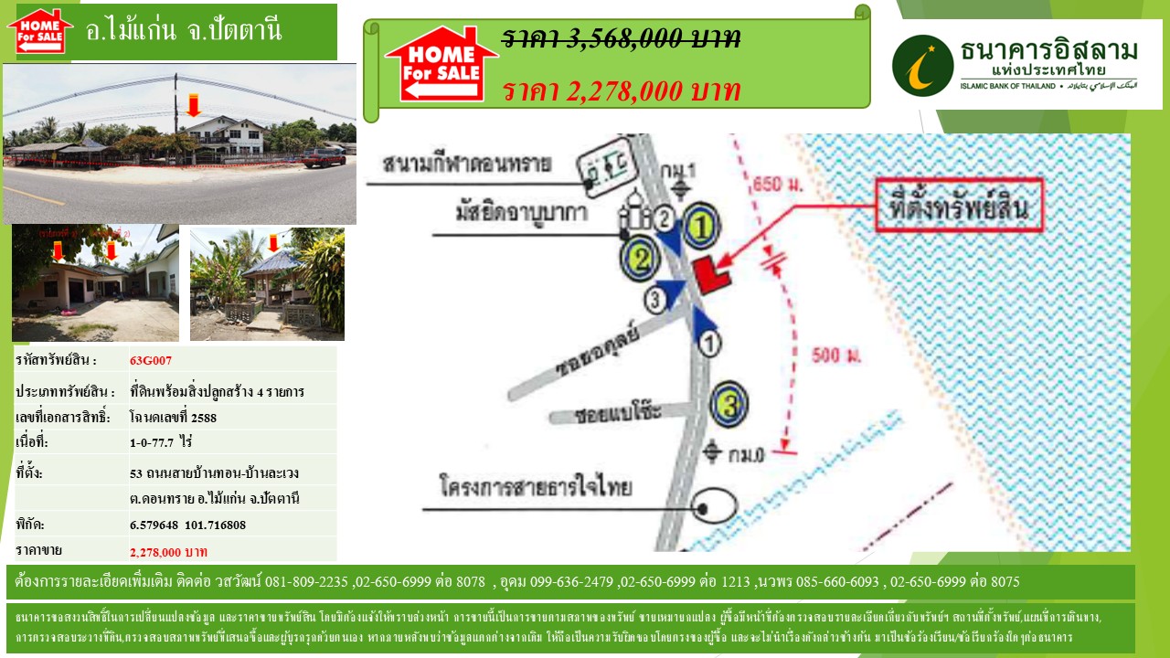 รหัส : 63G007 - ที่ดินพร้อมสิ่งปลูกสร้าง 4 รายการ