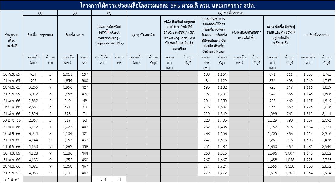 • รายงานมาตรการช่วยเหลือลูกหนี้