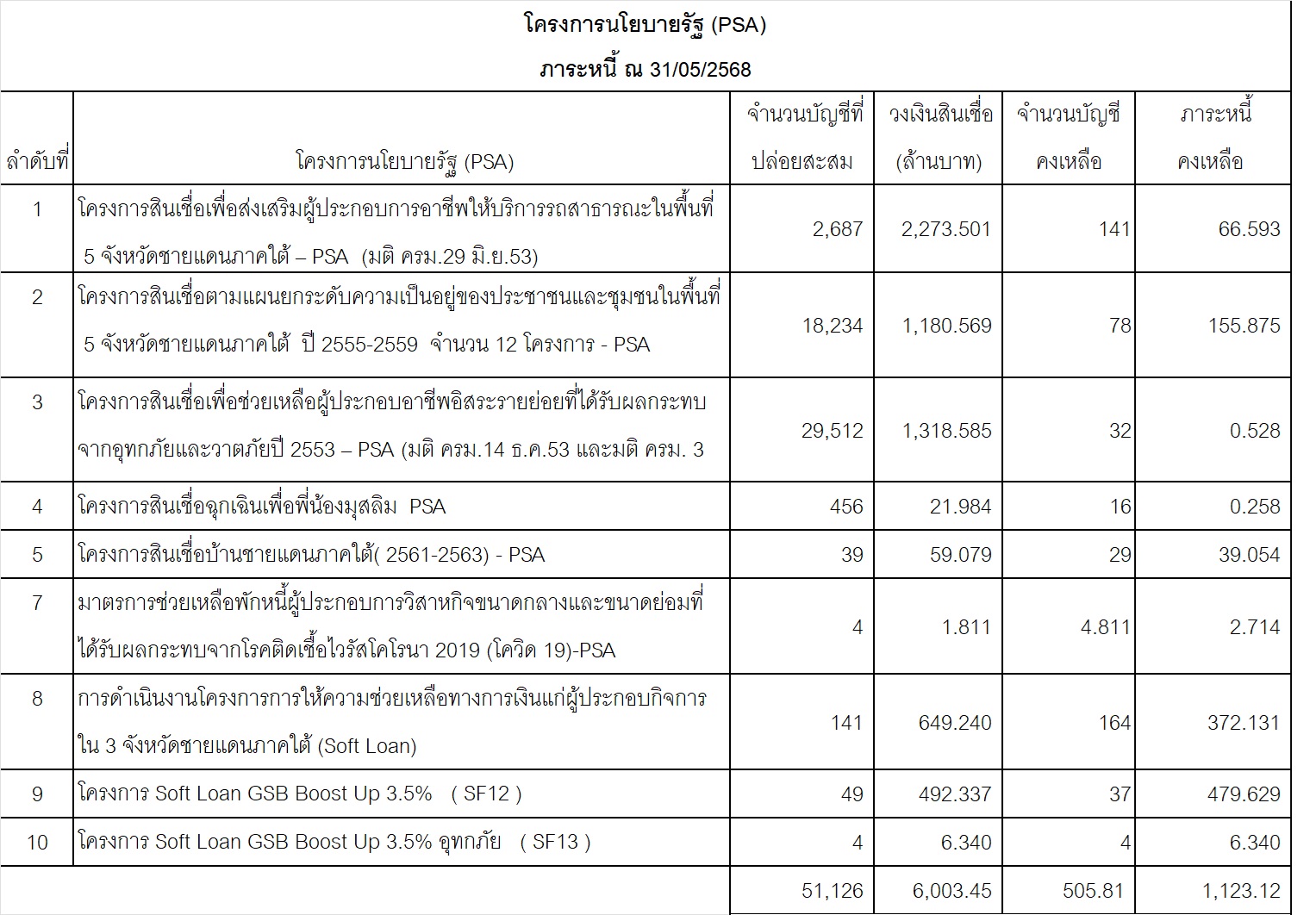 สินเชื่อฟื้นฟู PSA โครงการของแต่ละ SFIs PSA โครงการของแต่ละ SFIs